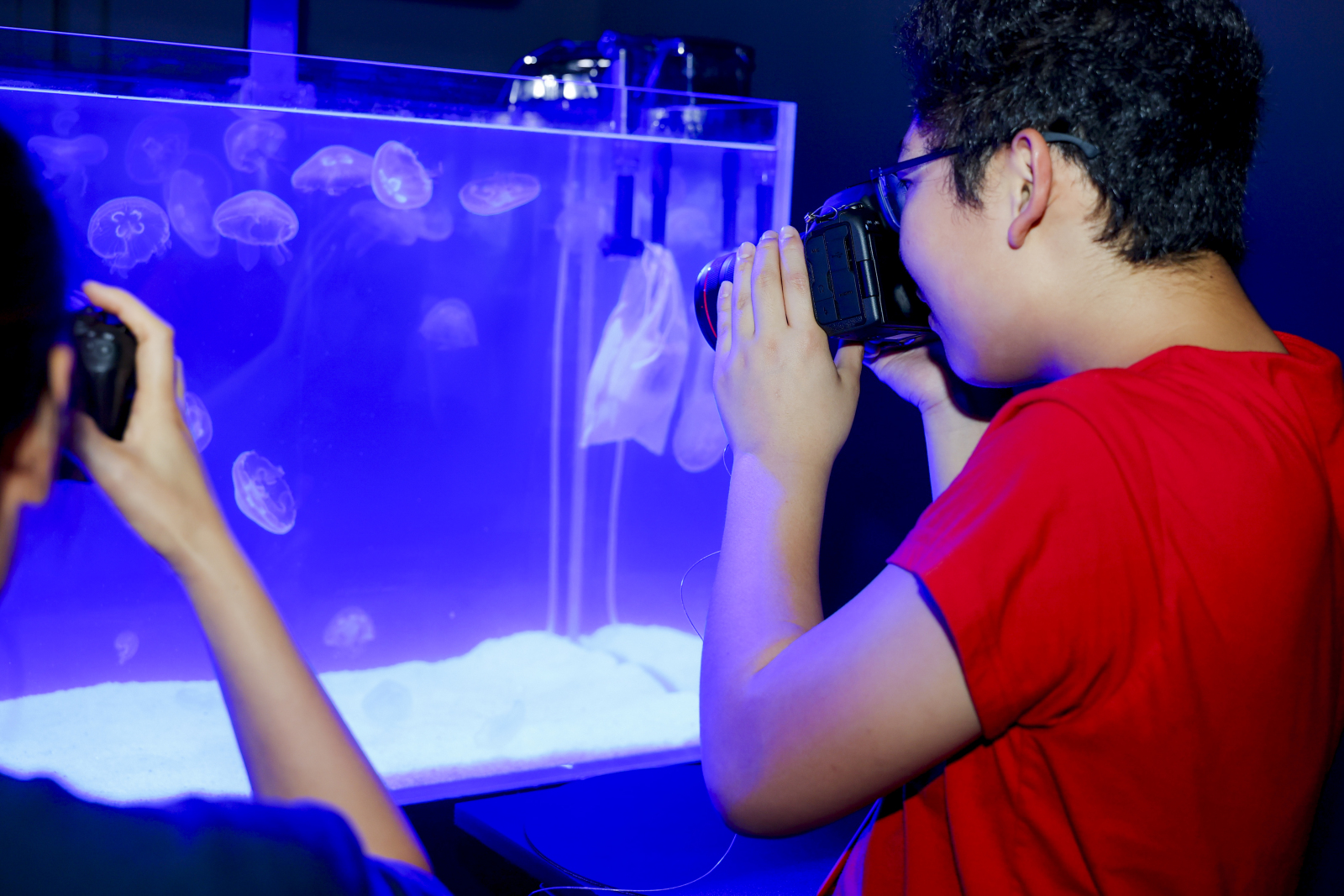 整个展览共设置三层展区。一层为影像艺术互动区,通过光影与影像的结合,为影像作品增添灵动和强烈的视觉呈现。二层是“文化遗产石窟”和“深海秘境”沉浸式观展体验区,“文化遗产石窟”的展区设计用纸艺重现了石窟场景,现场展示如唐代鎏金铁芯铜龙、商代戴金面罩青铜人头像等文物摄影作品,并通过投影的方式呈现,让参观者在虚实交错中完成一场跨越时空的文化对话;而在“深海秘境”体验区,借助光影技术,观众仿佛置身于神秘的海底世界,与水下生物进行一场亲密的对话。四层的展览内容则更加丰富,实景搭建的艺术风格花园美轮美奂,成为参观者争相打卡的梦幻背景;多面镜射的深空和沉浸式投影打造的极光海滩让人沉浸于“星穹咏叹”的视觉洗礼;更有那被大气中的尘埃粒子反散射形成的淡粉色光弧,这个反曙暮光也叫“维纳斯带",灰蓝的色带就是地球的影子。气膜材质灵感源于在观测时感受到的“天空的呼吸”,把无形的空气实体化。观众看到的不只是“固体”,也像空气在光中的显影。这标志了维纳斯带的生命性:轻盈、流动、随时间消散。球体仿佛在呼吸,回应着人类与大气之间最基本的连接,为到场的每一位观众献上一场真实可感的天文奇景。