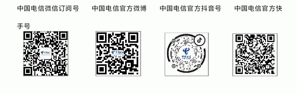 获取更多信息,请访问中国电信官方网站www.chinatelecom.com.cn或者关注“@中国电信”微信订阅号、官方微博、抖音和快手账号。