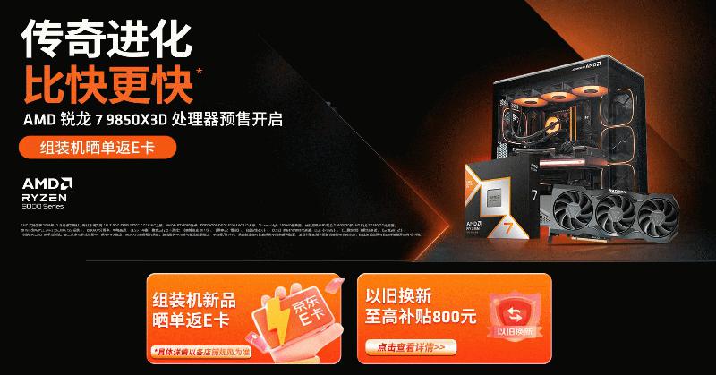 传奇进化 比快更快!AMD 锐龙7 9850X3D及组装机京东预售开启